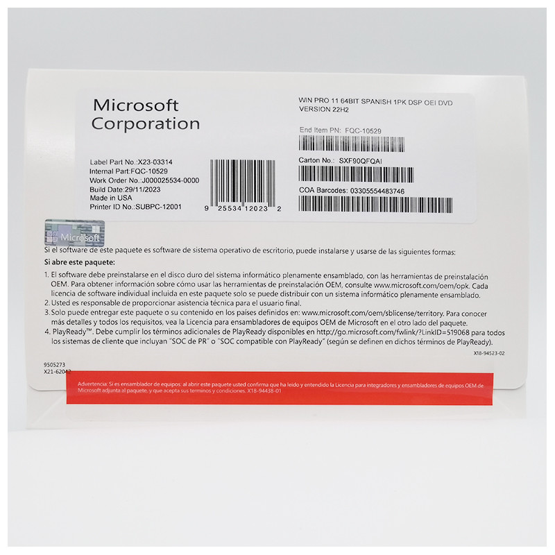 Αυθεντικό Κλειδί CD OEM Windows 11 Pro με Ενσωματωμένο Πακέτο Γλώσσας Ισπανικών