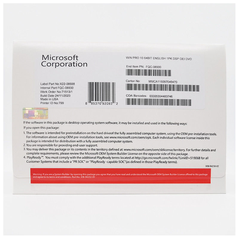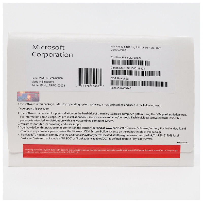 | Αριθμό μοντέλου: | Win 10 Pro OEM |